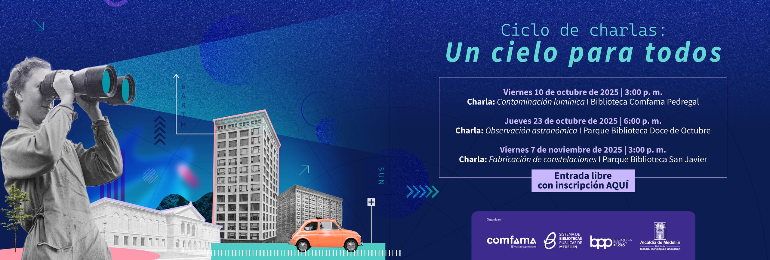 El Sistema de Bibliotecas Públicas de Medellín y los Laboratorios de Creación y Aprendizaje de Bibliotecas Comfama, se unen para desarrollar un espacio de reflexión, observación y creación, donde la tecnología se convierte en la ventana para observar y comprender el fenómeno de la contaminación lumínica.
